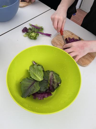 Unter dem Motto "Nur die Harten ernten im Januar im Garten" bereitete die Garten AG heute einen frischen Feldsalat und eine leckere Kohlpfanne zu.