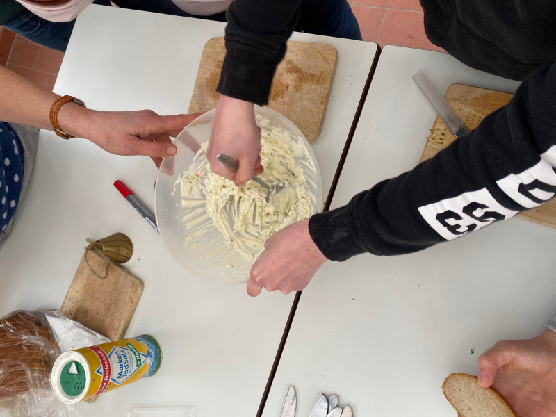 Anschließend haben wir uns noch einen schnellen Aufstrich gemacht- natürlich mit den Kräutern frisch aus dem Garten. Dem milden Winter sei Dank. Ihr könnt euch vorstellen, wie schnell der alle war...