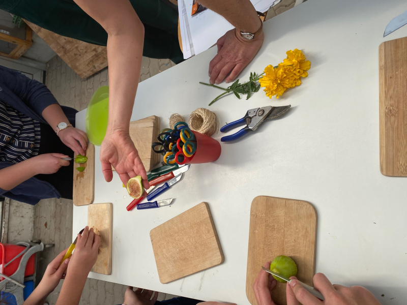 Bei bestem Frühlingswetter haben wir heute Feldsalat geerntet und zubereitet sowie Blumensamen für eine Blühwiese gesät.