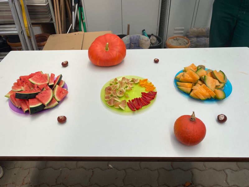 Auch in diesem Jahr sind SchülerInnen der 5. und 6. Klassen einmal in der Woche im Pflanzgarten der Franckeschen Stiftungen zu Gast. In der ersten Stunde durften sie nach einer Kennlernrunde des Areals überall naschen wo sie wollten. Anschließend haben sie Tomaten, Basilikum, Wasser- und Honigmelone sowie Paprika geerntet, gewaschen, geschnitten, präsentiert und gegessen. :-) Wenn das kein leckerer Start war!